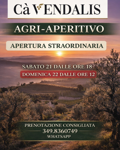 Cà Vendalis apre eccezionalmente le sue porte per un nuovo appuntamento con l’Agri Aperitivo, un’esperienza autentica tra natura, vino artigianale e paesaggio, nel cuore dei Colli