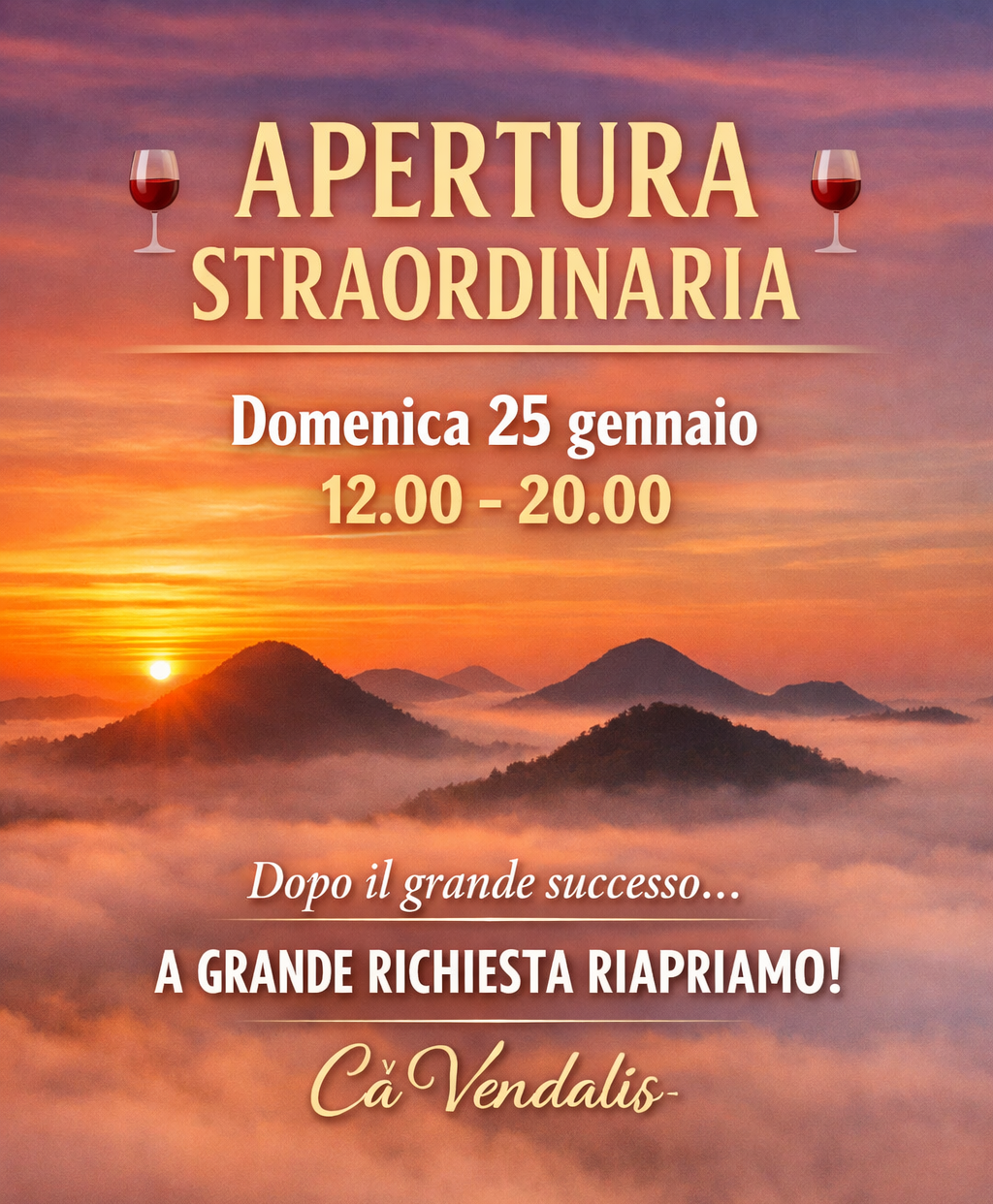 Dopo il grande successo dell’ultima apertura, torniamo con una nuova giornata straordinaria tra i Colli Euganei 🍷.