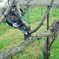 Potatura dei vigneti sui Colli Euganei per vini di qualità