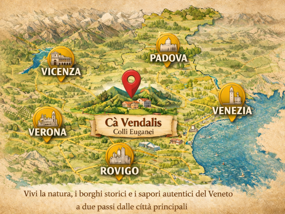 A 5 minuti dal Monte Venda, cantina e agriturismo per aperitivi, degustazioni e Wine Experience prima o dopo gli eventi.